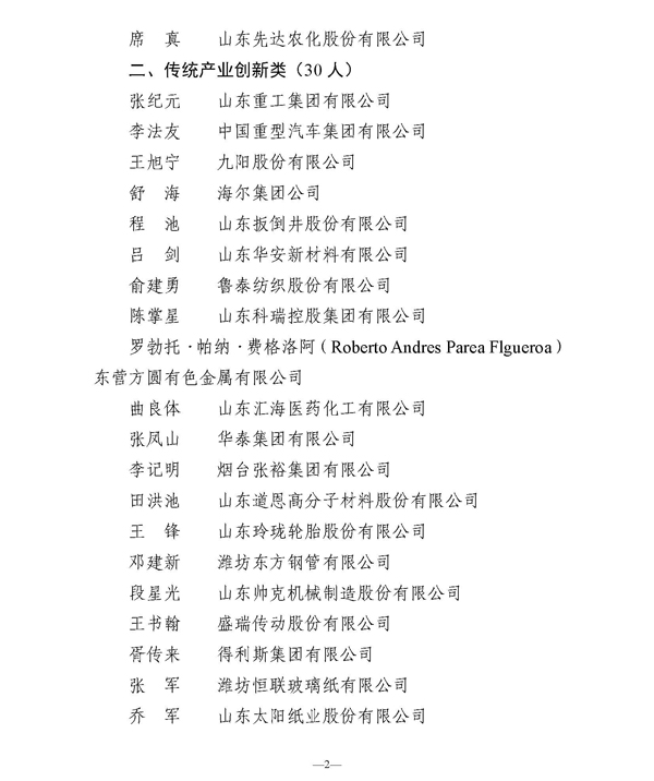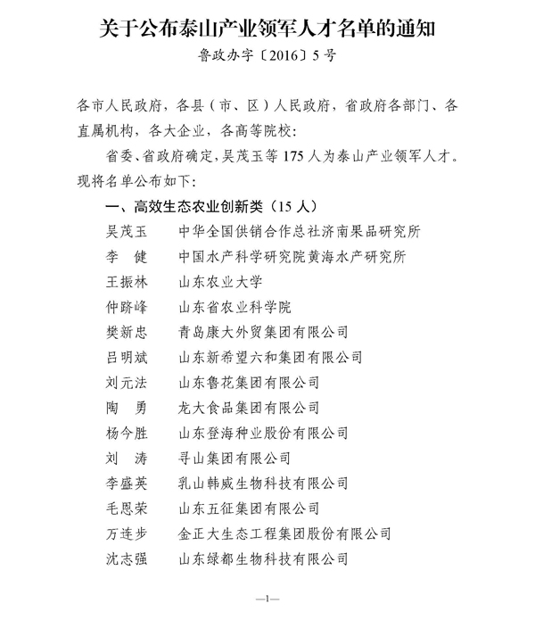 具體榮獲泰山產(chǎn)業(yè)領(lǐng)軍人才名單如下: