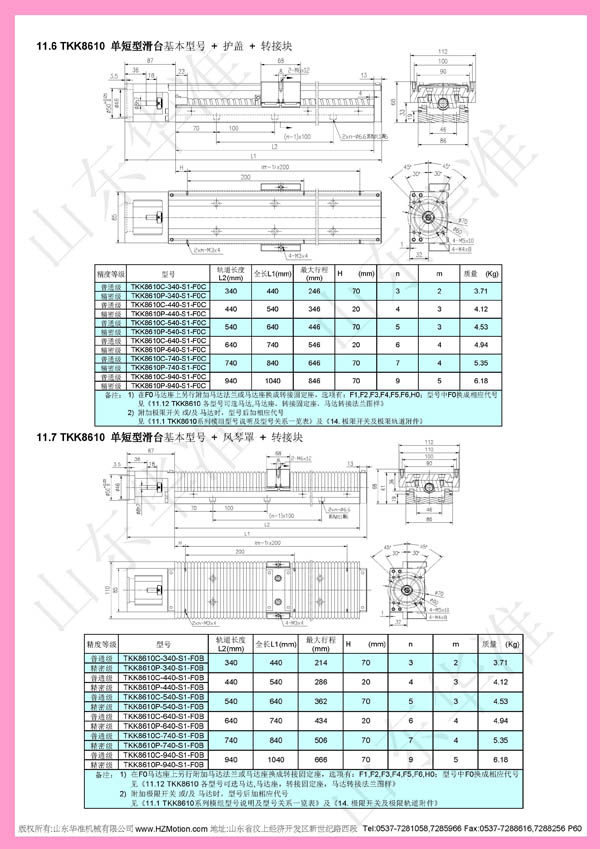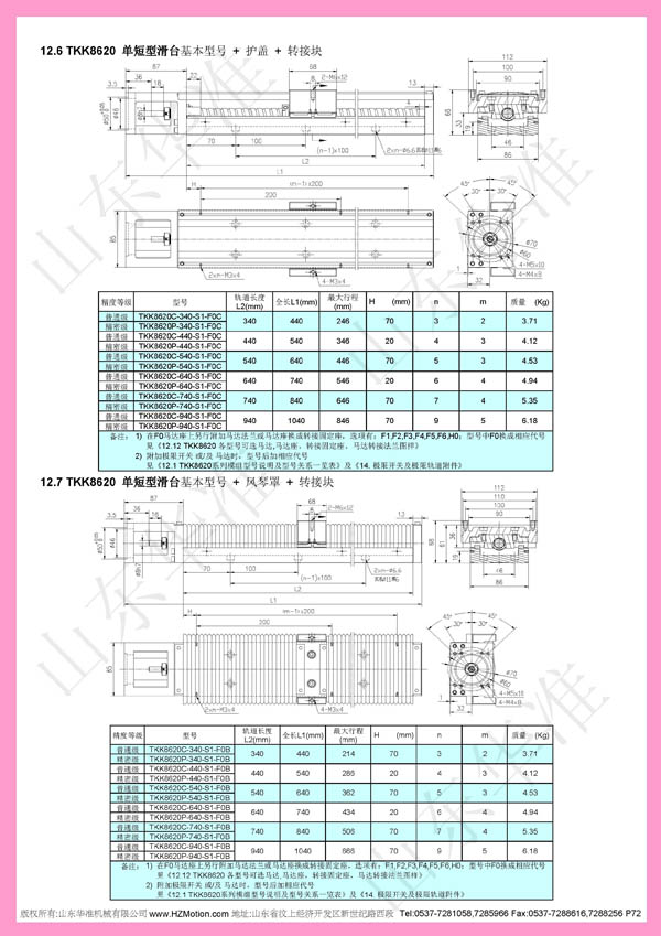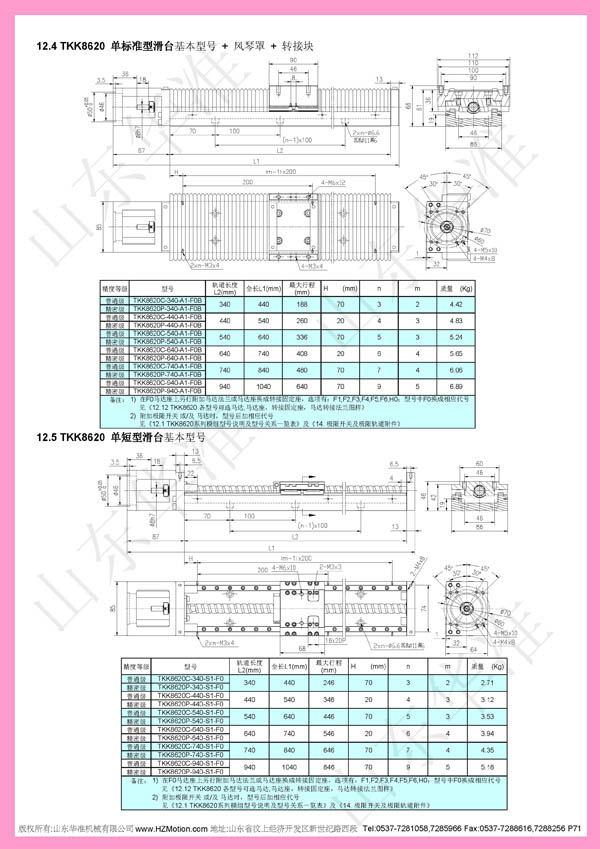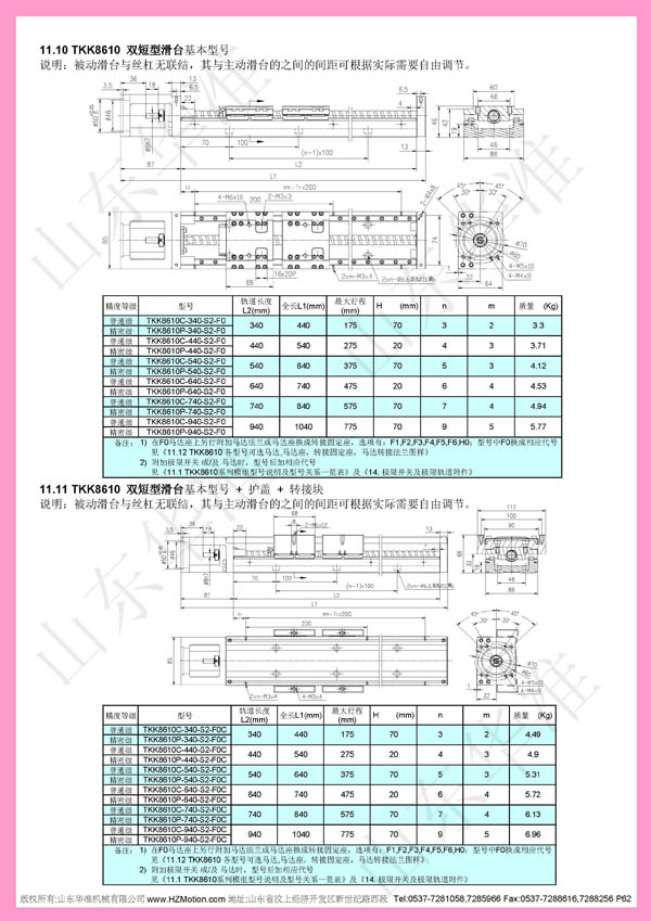 TKK8610直線模組和TKK8620直線模組除絲杠導程不同,其它相同!
